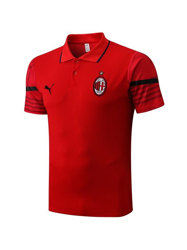 AC Milan 2023-2024 Men's Red Soccer Training Polo Jersey: Football Sportswear, Sports Shirt